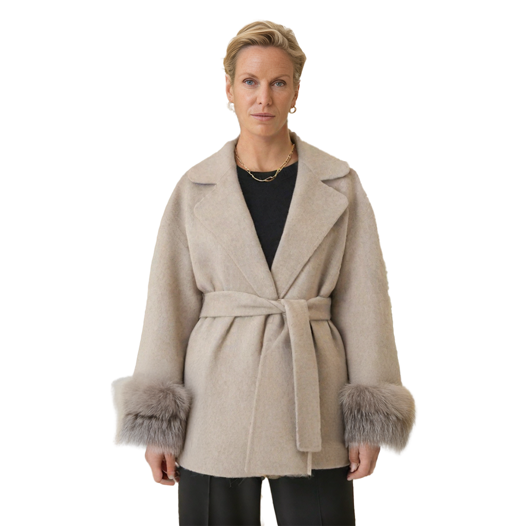 - Matériau : Mélange de laine premium avec détails en fausse fourrure douce