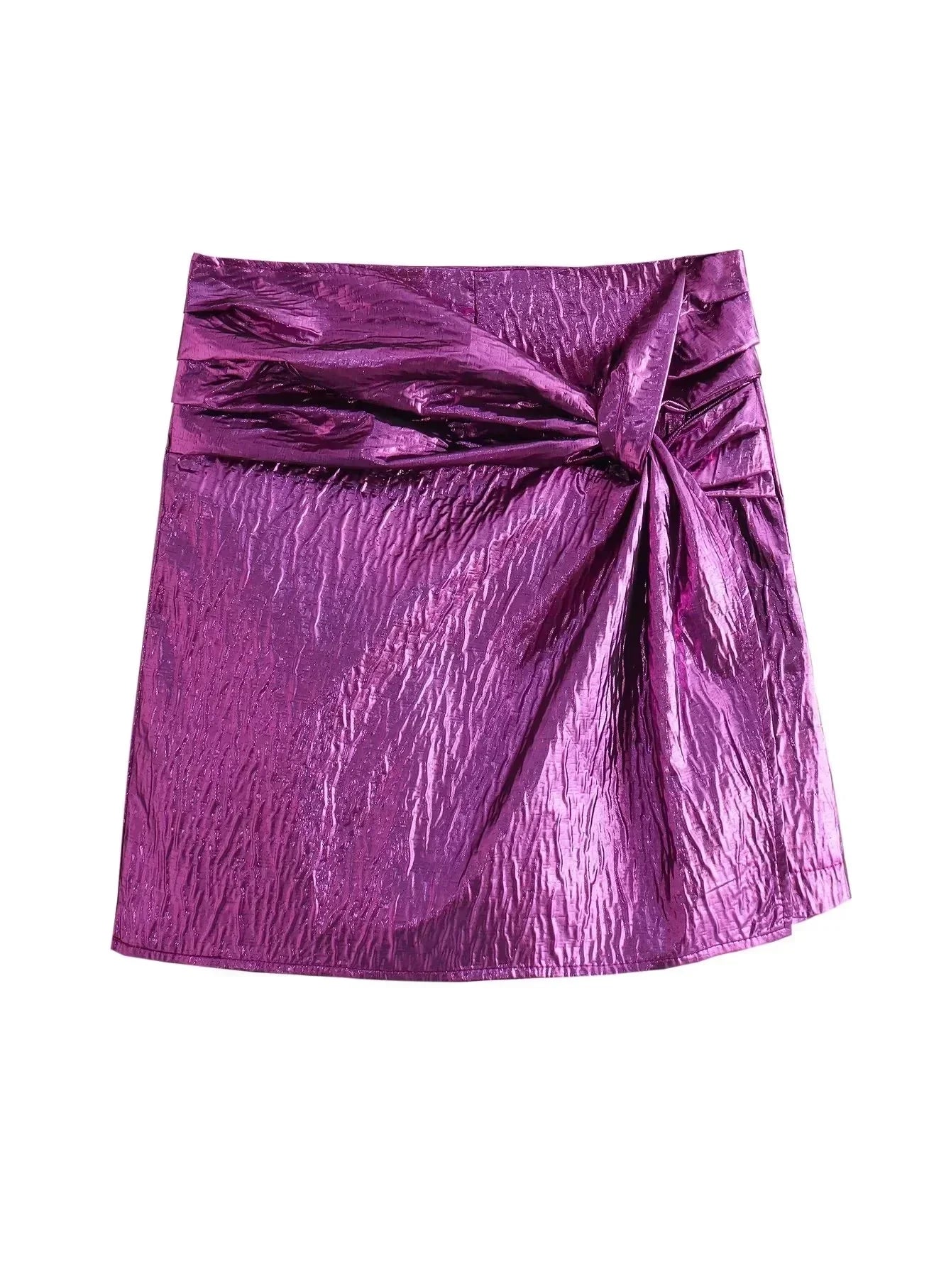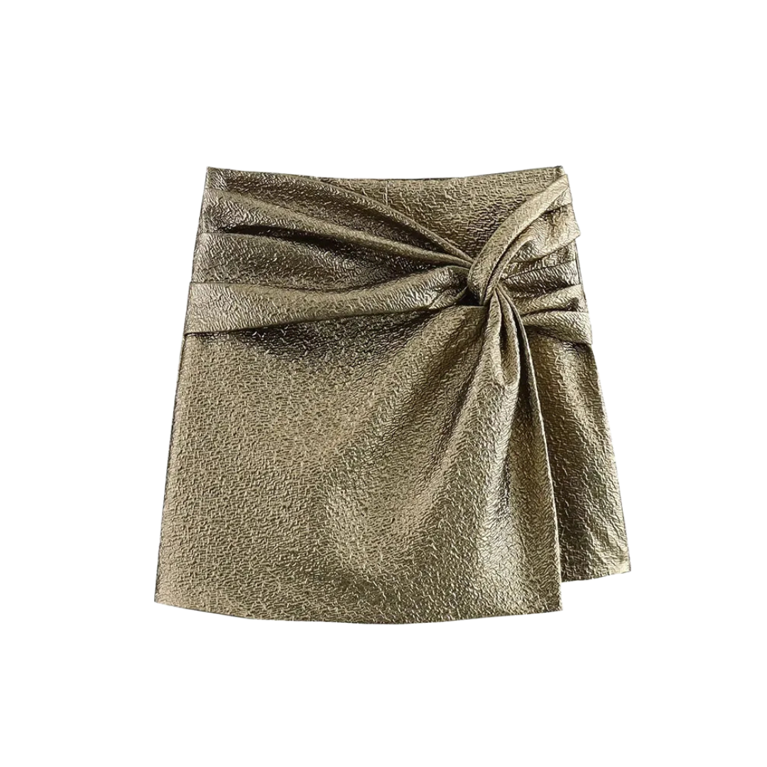 Attirez les regards et brillez comme une étoile avec La Jupe Enveloppante Métallique Margo ! Conçue pour les femmes audacieuses et confiantes, cette jupe présente une finition dorée luxueuse et un détail de nœud drapé élégant, la rendant parfaite pour une soirée, des occasions spéciales ou des fêtes de fin d'année.