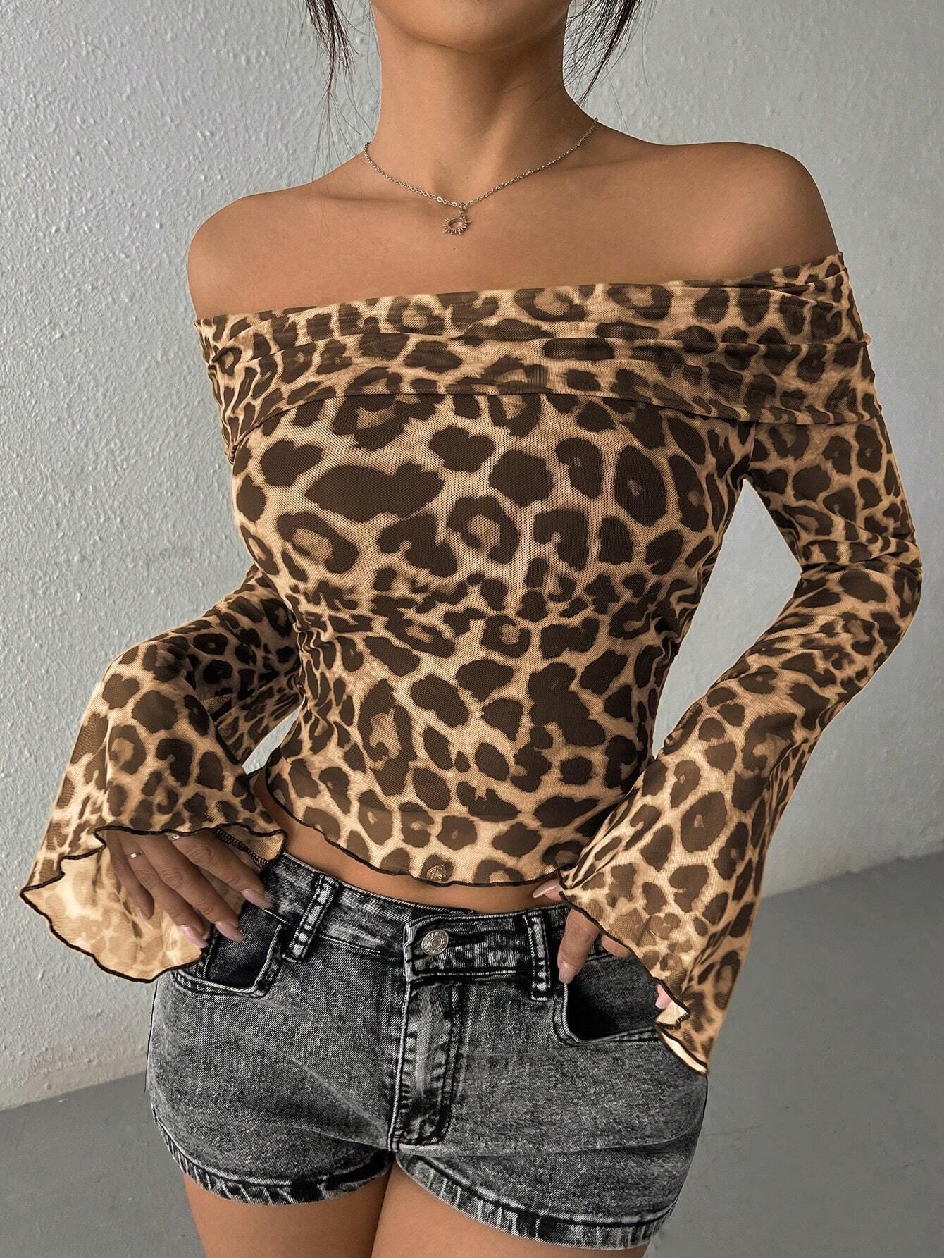 Attirez les regards et dégagez de la confiance où que vous alliez avec le Haut Off-Shoulder Léopard Luxe—votre pièce incontournable pour un style chic et audacieux.