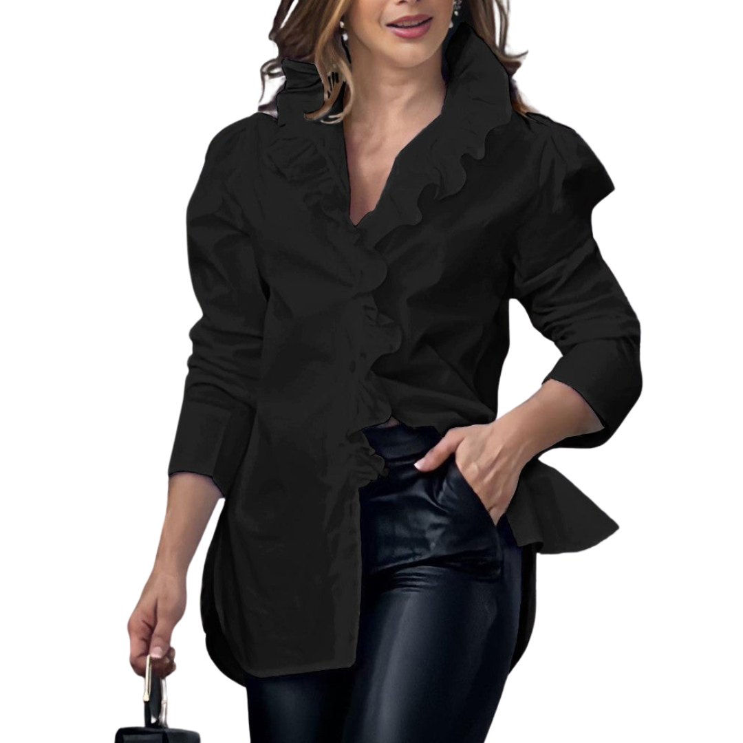 Élevez votre style avec la Chemise à Col V Froncée Delight Me, où la sophistication rencontre le chic dans une teinte blanche éclatante. Cette chemise présente une coupe cropped et est ornée de fronces délicates autour du col V, ajoutant une touche de fantaisie à votre ensemble.
