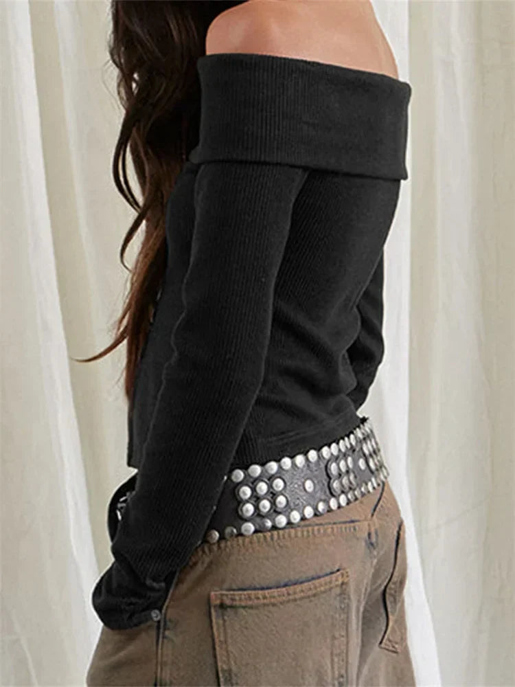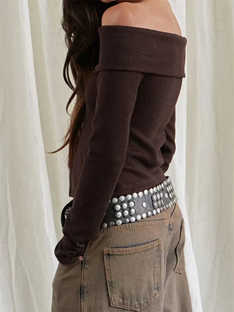Le Haut Tricot Jade Off-Shoulder – L'Élégance Intemporelle Rencontre le Confort Sans Effort