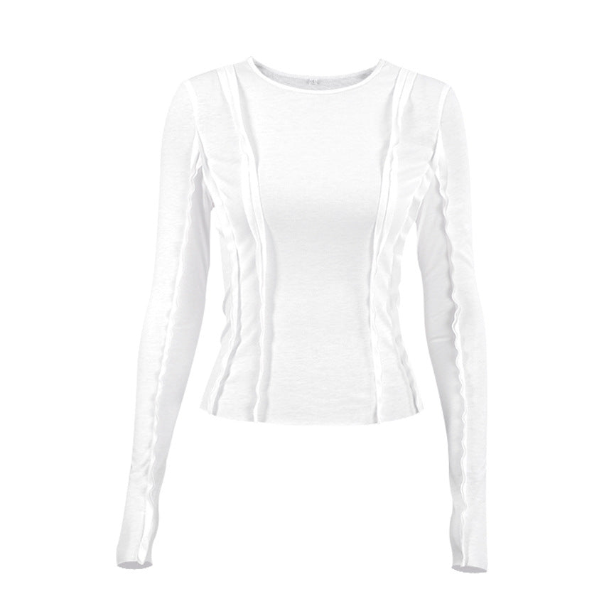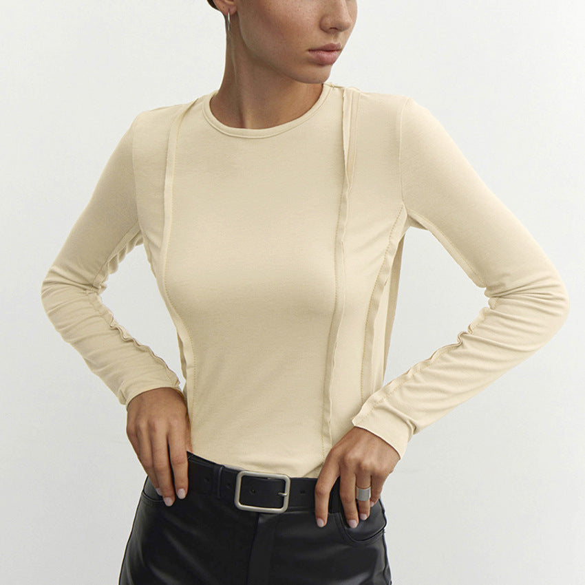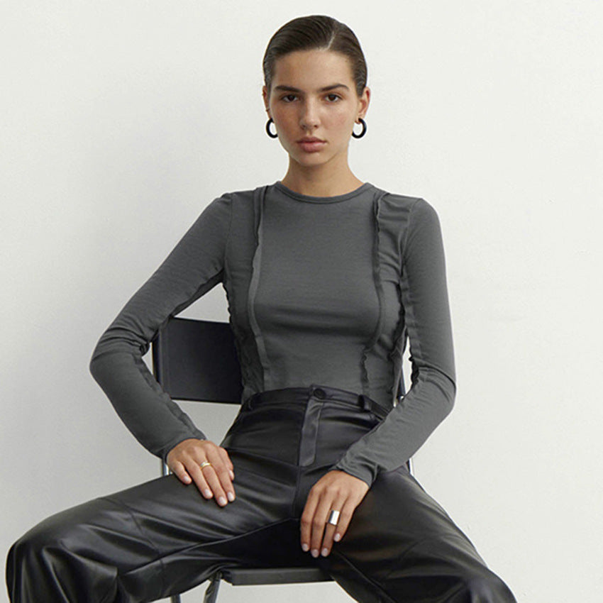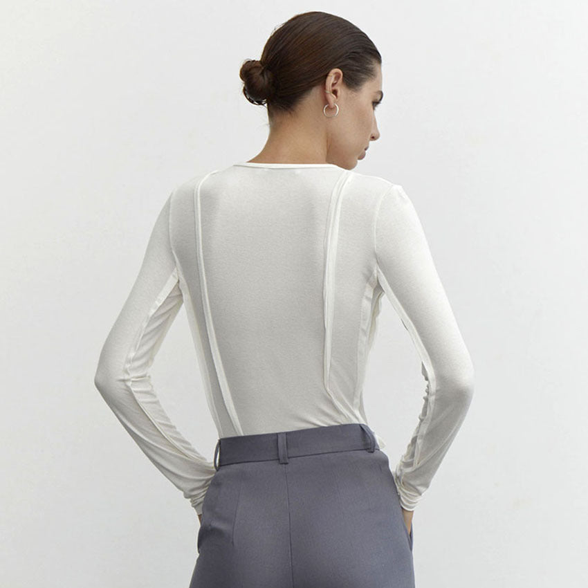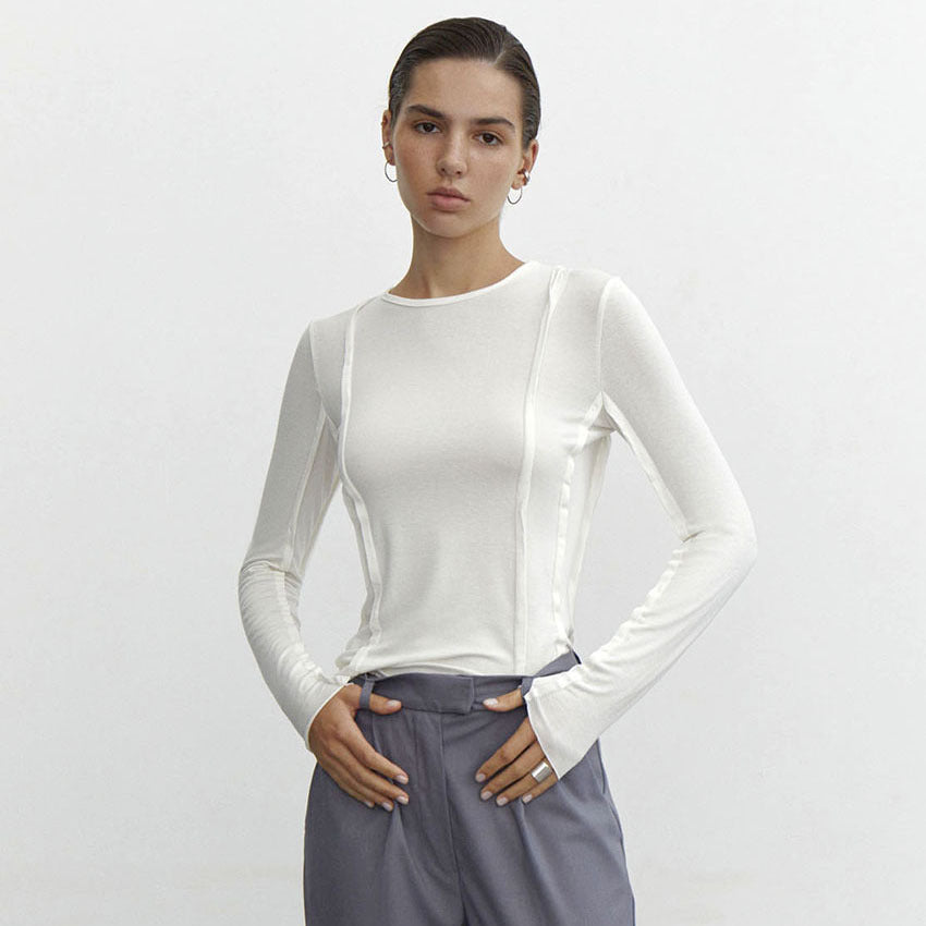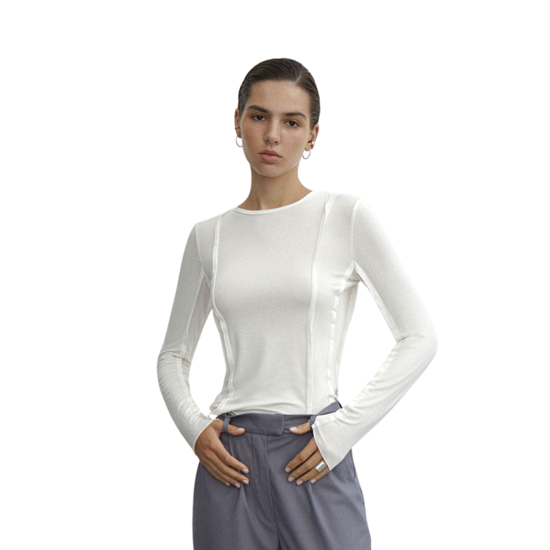 Un haut à manches longues élégant et sophistiqué avec des détails de couture exposés uniques, parfait pour ajouter une touche d'audace à votre garde-robe quotidienne. La silhouette ajustée et le tissu doux et extensible en font un incontournable pour le superposition ou à porter seul.