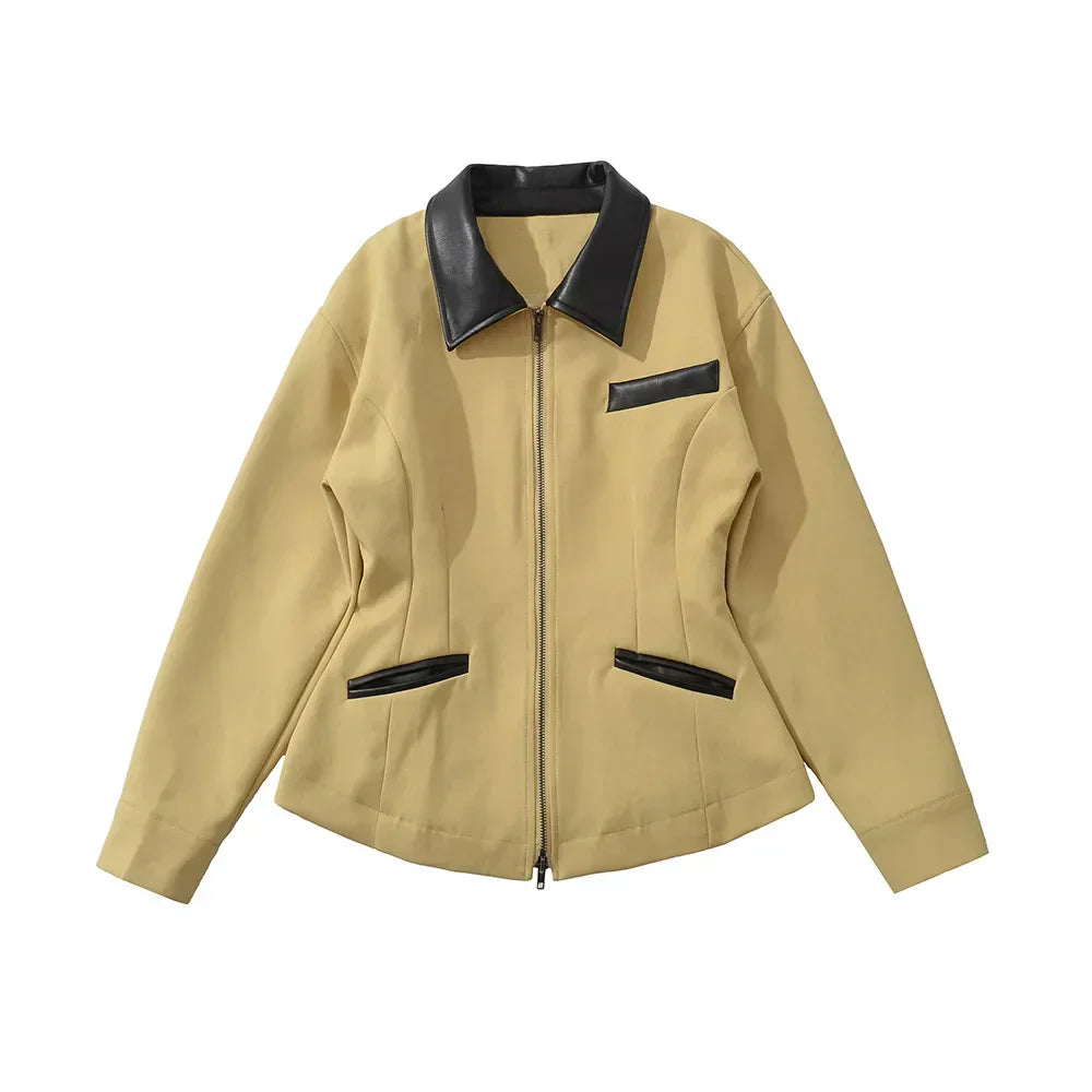 Un col à revers en cuir qui apporte une touche raffinée et souligne le caractère chic de la veste.