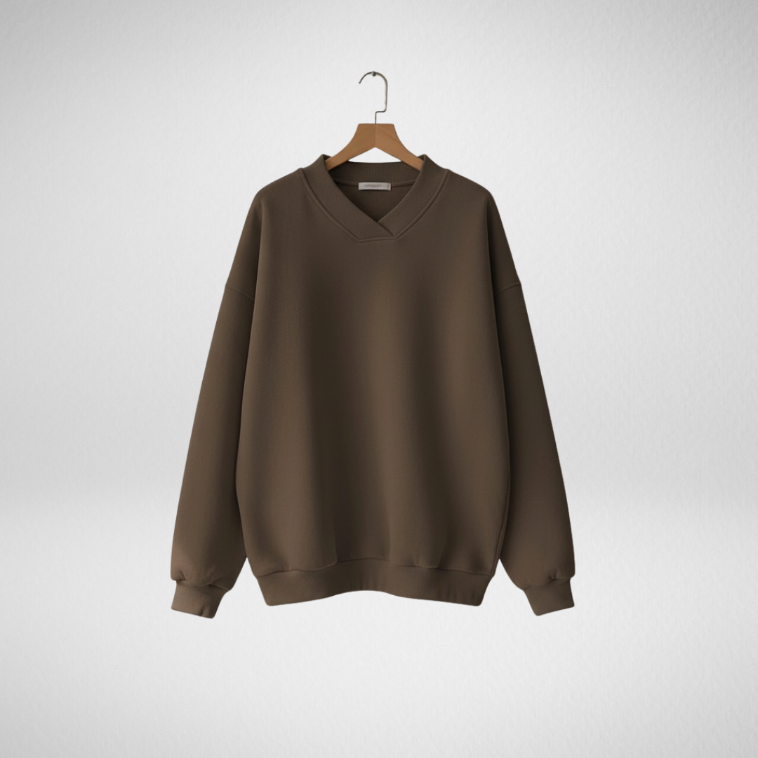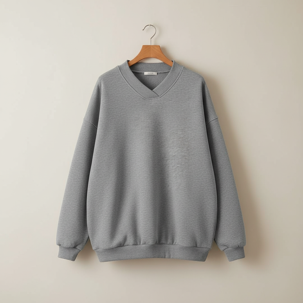 Sa coupe oversize épouse le corps sans le contraindre, tandis que son col en V délicat révèle juste ce qu’il faut de féminité.