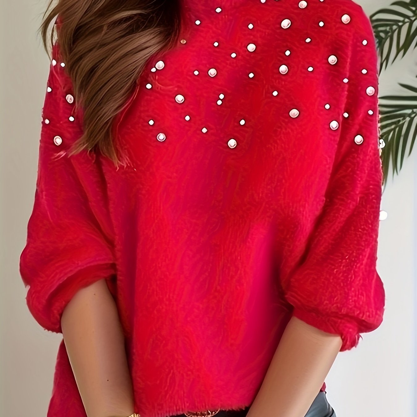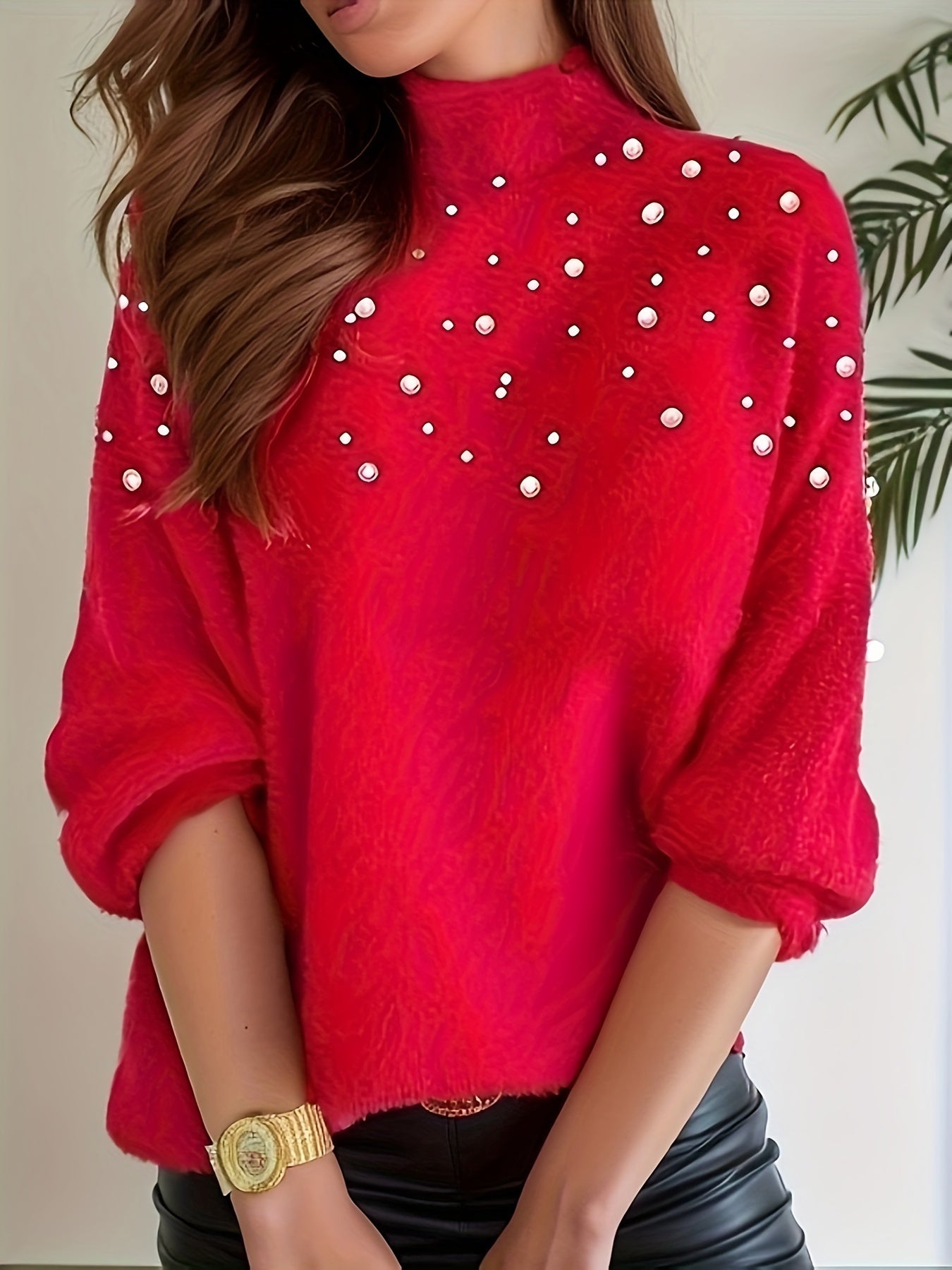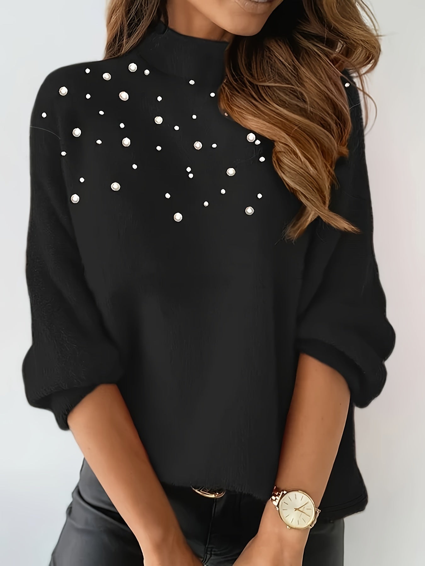Affirmez votre féminité avec Élisa | Pull Perlé Raffiné. Sa coupe fluide, son col montant délicatement structuré et ses perles raffinées subtilement disposées créent une allure lumineuse et sophistiquée. Une pièce pensée pour sublimer le quotidien avec élégance, tout en offrant une sensation de douceur et de confort absolu.